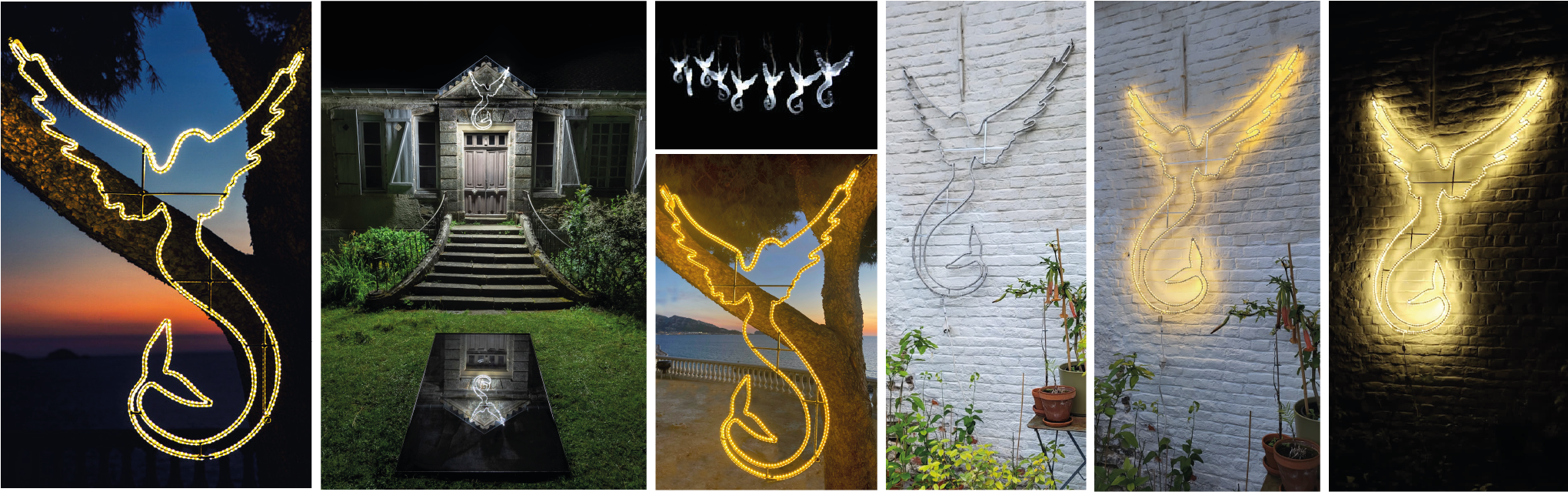 Luminaire et sculpture, l' Ange-Sirène né(e) d'une double inspiration, celle de l'imagerie religieuse des anges et celle des fées d'eau fait partie du patrimoine légendaire de la Bretagne natale de Stéphane Plassier. Elle disperse les lueurs célestes et divines des anges.